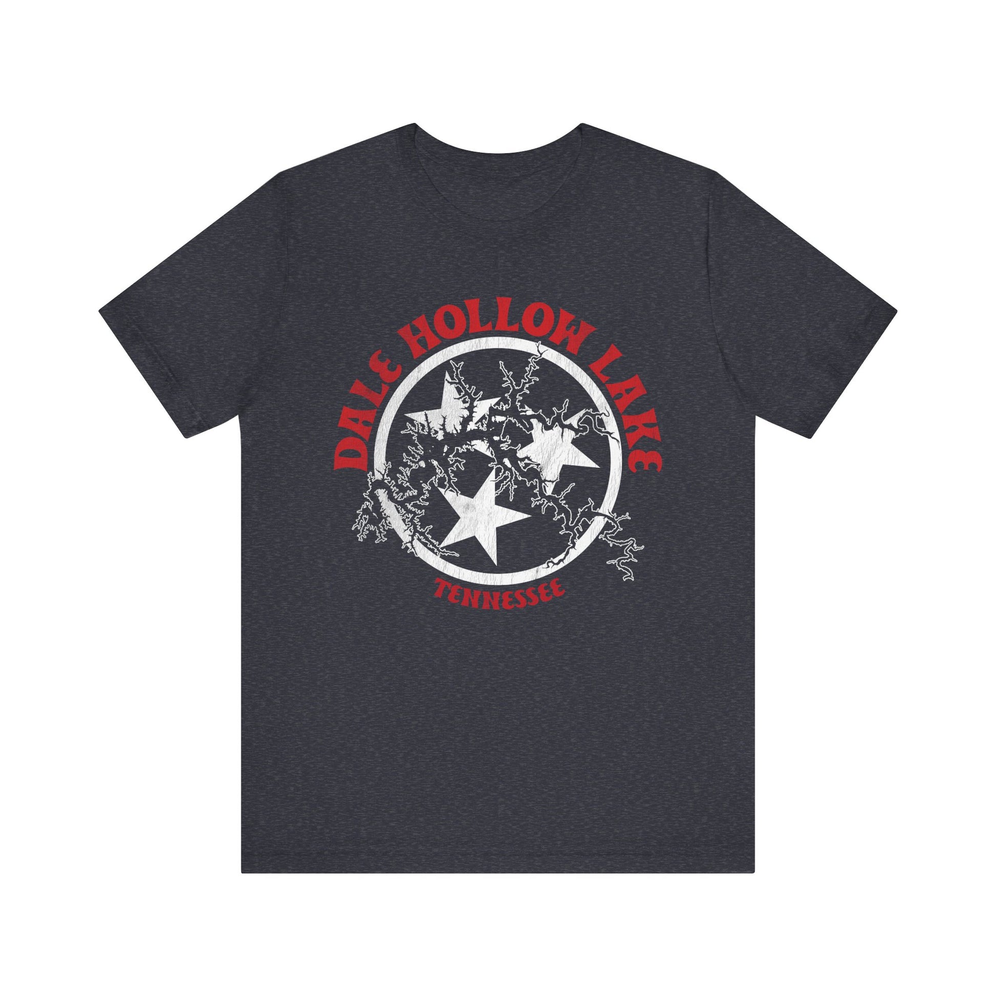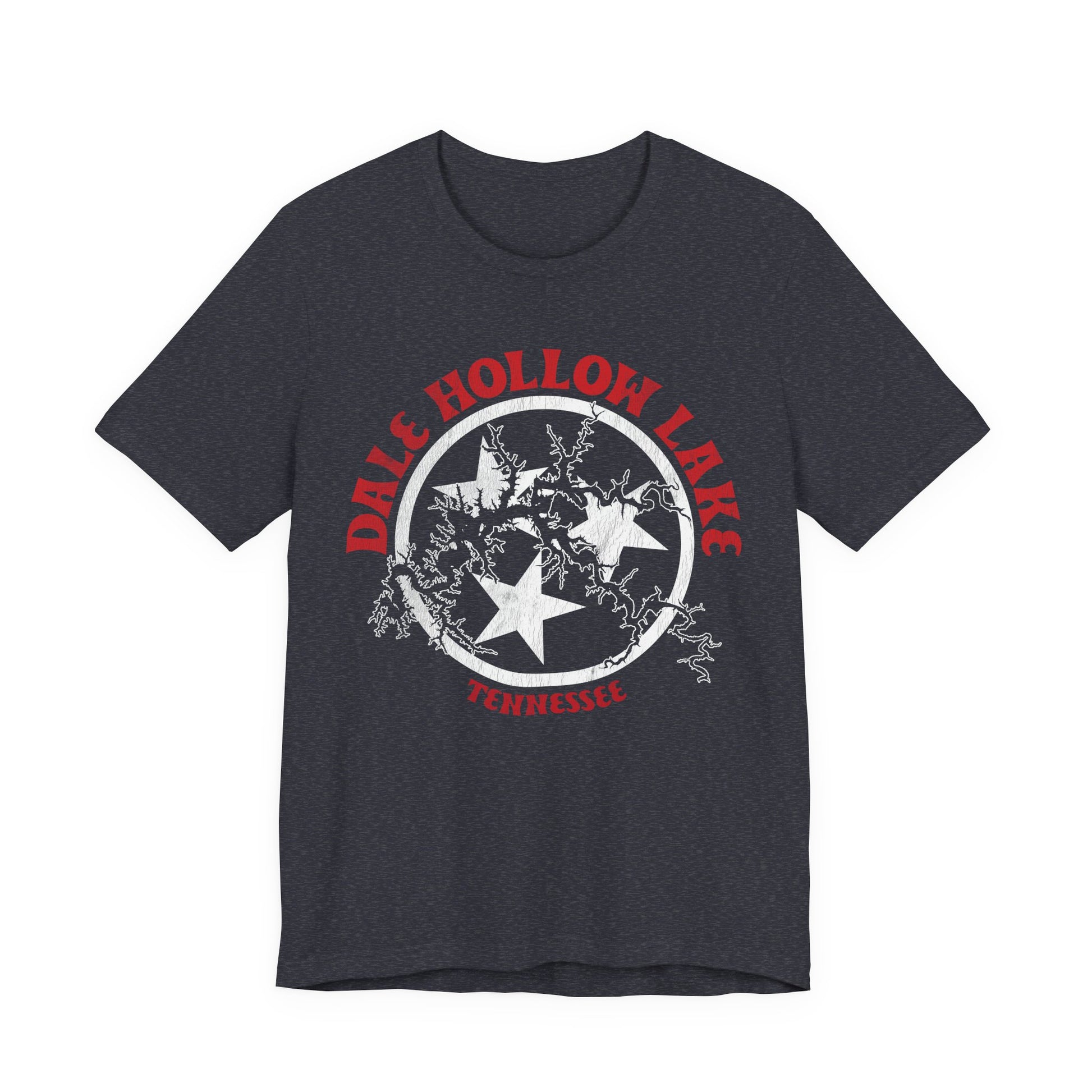 Rooted in Tennessee pride and inspired by the winding shoreline of one of the South’s most beloved lakes, the Dale Hollow Lake Tri-Star Heritage Tee blends local legacy with bold, graphic storytelling. The design centers on the iconic Tennessee tri-star emblem, framed by a detailed outline of Dale Hollow Lake’s branching waters—each line echoing quiet coves, early mornings, and long summer days on the lake. Finished with distressed textures and classic red-and-white contrast against a deep heathered backdrop, this tee feels timeless and lived-in from day one. It’s a tribute to place, memory, and the kind of freedom only found where the water runs deep and the pace slows down.