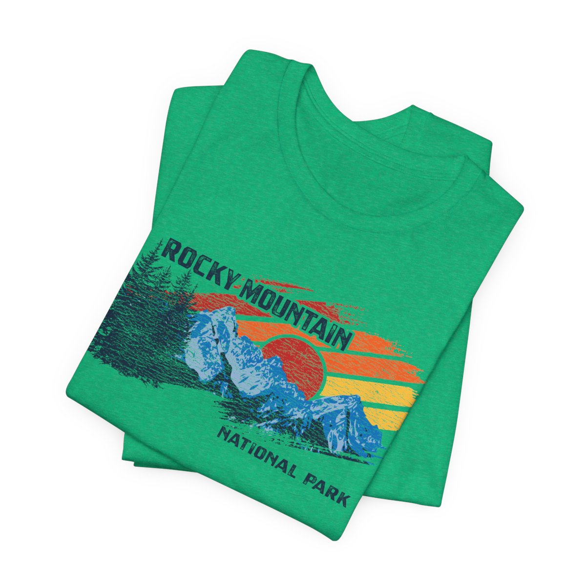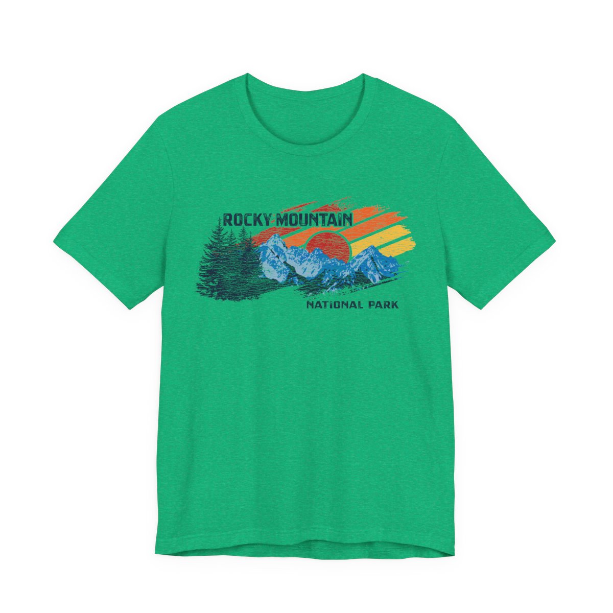 Bring the breathtaking beauty of Colorado’s high country into your everyday style with our Rocky Mountain National Park Sunset Peaks Tee. Featuring a vibrant hand-drawn scene of rugged alpine mountains, evergreen trees, and a bold painted sunset, this design captures the dramatic contrast and iconic colors of the Rockies at golden hour. The distressed artwork adds a vintage, well-traveled look—perfect for hikers, explorers, and anyone who carries a love for the mountains.